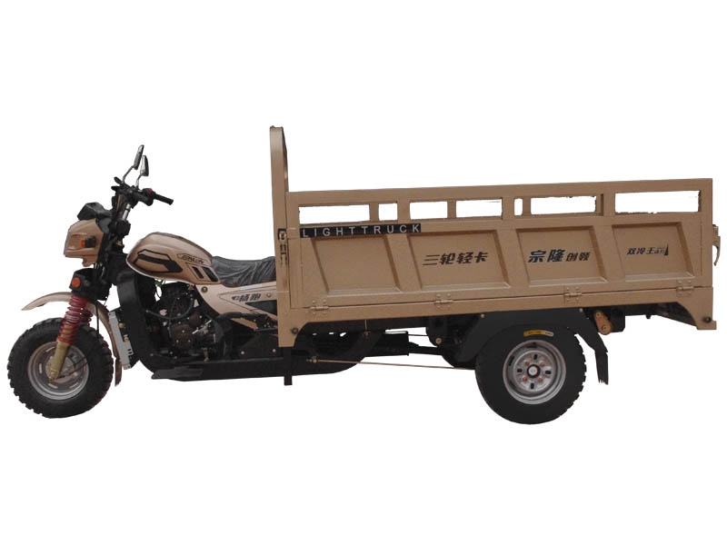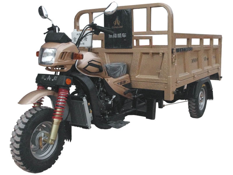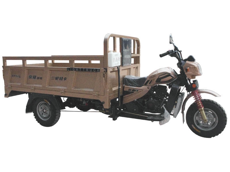 ZONLON Cargo Tricycle ZL200ZH-5N Place of Origin:Chongqing,China Brand:ZONLON or OEM Model No.:ZL200ZH-5N Color:red,orange,blue,yellow,white,etc Size:3400×1350×1550mm ZL200ZH-5N 200cc Water-Cooled Cargo Truck Motor Tricycle Specification Feature EngineEngine typeSingle cylinder, water cooling, 4-stroke Displacement197mlCompression ratio10.2:1Max power output10.3 / 7500 kw/r/min Max torque14.2 / 6000 N·m/r/ min ClutchWet multi-plate, Pressure splashTransmission & Reverse5 forward gears + 1 reverseSteering mechanismSteering handle barChassisFR / RR 50×100 rectangular steel tubeFront suspensionZONLON off-road shock absorberRear suspension7 pcs Pickup leaf spring, Ribbed JLW semi-float rear axle with booster Braking systemFR 130, RR 220, mechanical brakingWheel tireFR / RR 4.50-12Battery12V / 28AhStarting methodElectric / Kick starterFuel tankGasoline, 12LFuel consumption≤354Ground clearance160mmMax speed60km/h Overall dimensionWheel base2200mmDimension3400×1350×1550mmCargo box size1800×1350mmVehicle weightKerb 450 kgs, Pay load 350 kgsContainer load24 sets in CKD / 20GP; 52 sets in CKD / 40HQ Optioal parts1. Semi-Cabin2. Cargo box size and type optional on request3. Hydraulic braking system 4. Dumper systemCatalogue download: ZONLON-Motor-Tricycle-ZL200ZH-5N