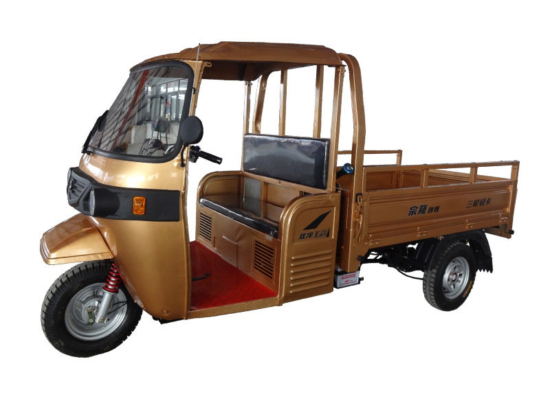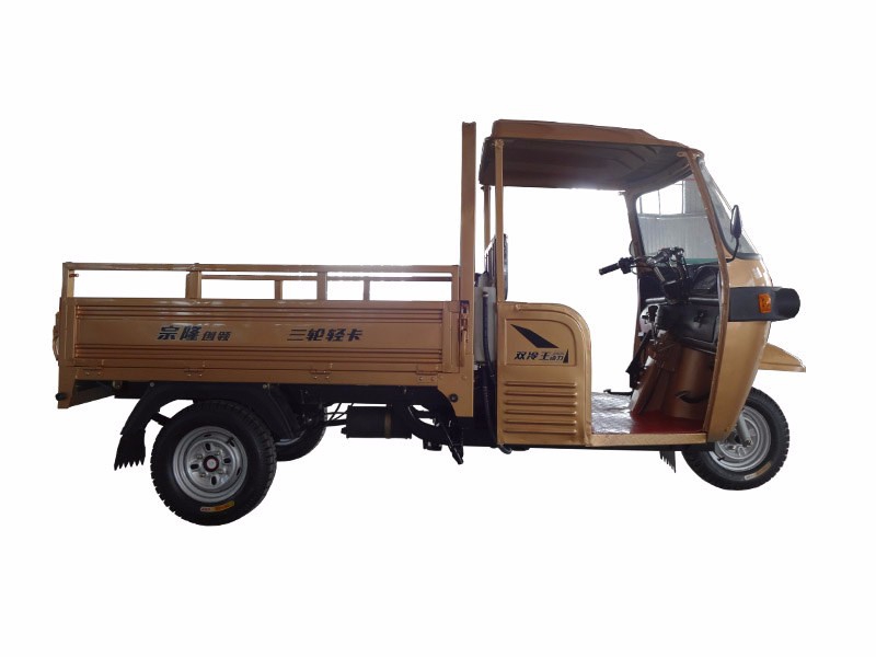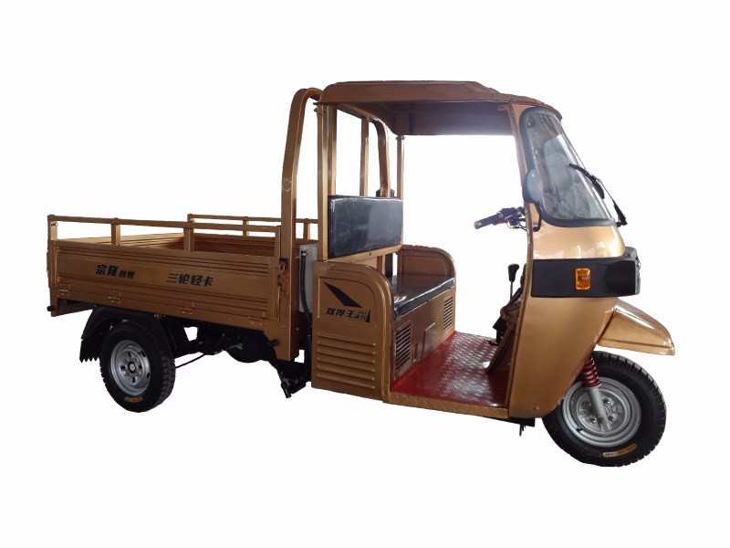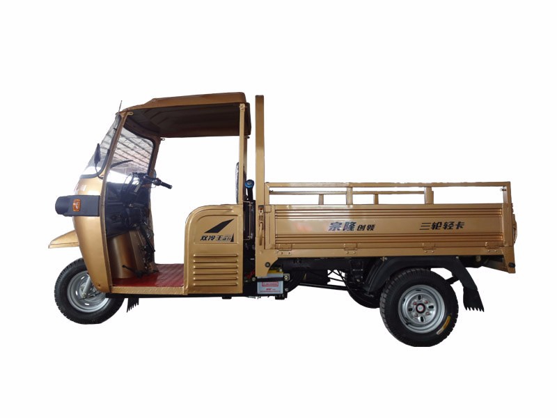 ZONLON Tricycle ZL200ZH-BT Place of Origin:Chongqing,China Brand:ZONLON or OEM Model No.:ZL200ZH-BT Color:red,orange,blue,yellow,white,etc Size:3500×1350×1820mm ZL200ZH-BT 200cc Water-Cooled Cargo Dump BAJA Tipper Motor Tricycle Specification Feature EngineEngine TypeSingle cylinder, water cooling, 4-strokeDisplacement197mlCompression ratio10.2:1Max power output10.3 / 7500 kw/r/min Max torque14.2 / 6000 N·m/r/ min ClutchWet, multi-plate, Pressure splashTransmission & Reverse5 forward gears + 1 reverseSteering mechanismSteering handle barChassisFR 40×100, RR 50×100 rectangular steel tubeFront suspensionType 800 W270 solo front shock absorber with interchangeable wheelRear suspensionIntegrated 7 pcs leaf spring for Pickup, Chan'an rear axleBraking systemFR130, RR 220, mechanical brakingWheel tireFR / RR 4.50-12Battery12V / 9AhStarting methodElectric / kick starterFuel tankGasoline, 12LFuel consumption≤354Ground clearance160mmMax speed60km/h Overall dimensionWheel base2350mmDimension3500×1350×1820mmCargo box size2000×1350×590mmCabinSemi baja type cabinDumping DeviceG6 single lifting cylinderVehicle weightKerb 500kgs, Pay laod 350 kgsContainer load10 sets in CKD / 20GP; 22 sets in CKD / 40HQ Catalogue download: ZONLON-Motor-Tricycle-ZL200ZH-BT