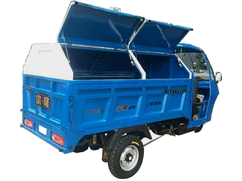 ZONLON Garbage Tricycle ZL200ZH-GD Place of Origin:Chongqing,China Brand:ZONLON or OEM Model No.:ZL200ZH-GD Color:red,orange,blue,yellow,white,etc Size:3400×1350×1850mm ZL200ZH-GD 200cc Air-Cooled Garbage Dumper Motor Tricycle Specification Feature EngineEngine TypeSingle cylinder, air cooling, 4-strokeDisplacement197mlCompression ratio10.2:1Max power output10.3 / 7500 kw/r/min Max torque14.2 / 6000 N·m/r/ min ClutchWet, multi-plate, Pressure splashTransmission & Reverse5 forward gears + 1 reverseTipper SystemSingle, 2-stage,hydraulic cylinderSteering mechanismSteering handle barChassisFR 50×100, RR 40×80 rectangular steel tubeFront suspensionType 800 W270 solo front shock absorber with interchangeable wheelRear suspensionGreased outer mounting 5+4 combined leaf spring, semi-float Chan'an rear axleBraking systemFR 130,RR 220, mechanical brakingWheel tireFR / RR 4.50-12Battery12V / 28AhStarting methodElectric / kick starterFuel tankGasoline, 12 LFuel consumption≤354Ground clearance160mmMax speed60km/h Overall dimensionWheel base2200mmDimension3400×1350×1850mmCargo box size1800×1350x1300mmCabinSteel semi cabin with square headlight Dumping DeviceG6 single lifting cylinderVehicle weightKerb 520 kgs, Pay load 350 kgsContainer load10 sets in CKD / 20GP; 22 sets in CKD / 40HQ Catalogue download: ZONLON-Motor-Tricycle-ZL200ZH-GD