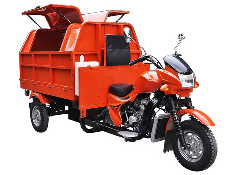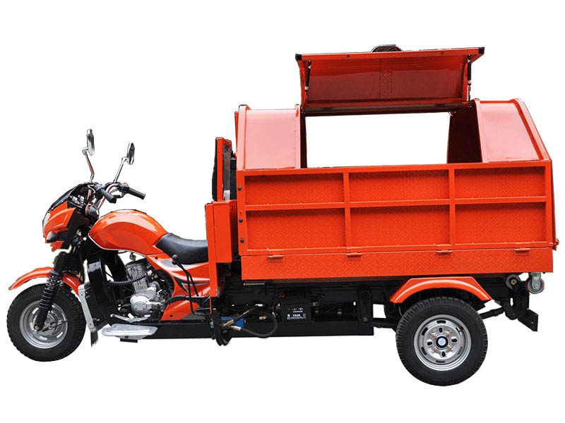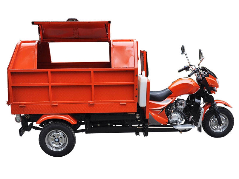 ZONLON Special Vehicle ZL250ZH-GT Place of Origin:Chongqing,China Brand:ZONLON or OEM Model No.:ZL250ZH-GT Color:red,orange,blue,yellow,white,etc Size:3600×1350×1920mm ZL250ZH-GT Garbage Tipper Motor Tricycle Specification Feature EngineEngine TypeSingle cylinder, water cooling, 4 strokeDisplacement229.5 mlCompression ratio10.5:1Max power output10.5 / 7000 kw/r/min Max torque16.5 / 5500 N·m/r/ min ClutchWet, multi-plate, Pressure splashTransmission & Reverse5 forward gears + 1 reverseTipper systemSingle, 2-stage, hydraulic cylinderSteering mechanismSteering handle barChassisFR 50×100, RR 40×80 rectangular steel tubeFront suspensionType 800 W270 Solo front shock absorber with interchangeable wheelRear suspensionIntegrated pickup 7 pcs leaf spring , Chan'an rear axle Braking systemFR 130, RR 220, mechanical brakingWheel tireFR / RR 5.00-12Battery12V / 28AhStarting methodElectric / kick starterFuel tankGasoline, 13LFuel consumption≤354Ground clearance170mmMax speed60km/h Overall dimensionWheel base2200mmDimension3600×1350×1920mmCargo box size1800×1350x1000mmVehicle weightKerb 530 kgs, Pay load 350 kgsContainer load10 sets in CKD /20GP; 22 sets in CKD / 40HQCatalogue download: ZONLON-Motor-Tricycle-ZL250ZH-GT