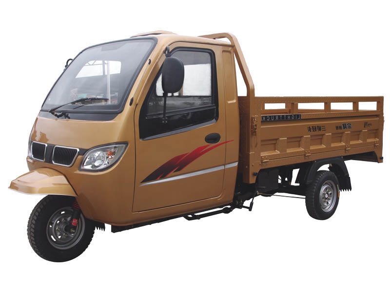 ZONLON Cargo Tricycle ZLK305 Place of Origin:Chongqing,China Brand:ZONLON or OEM Model No.:ZLK305 Color:red,orange,blue,yellow,white,etc Size:3600×1350×1850mm ZLK305 200cc Water-Cooled Closed Cabin Cargo Truck 3 Wheelers Motorcycle Specification Feature EngineEngine typeSingle cylinder, water cooling,4-stroke Displacement197mlCompression ratio10.2:1Max power output10.3 / 7500 kw/r/min Max torque14.2 / 6000 N·m/r/ min ClutchWet multi-plate, Pressure splashTransmission & Reverse5 forward gears + 1 reverseSteering mechanismSteering handle barChassisFR 40×100,RR 50×100 rectangular steel tubeFront suspensionType 800 W270 Solo front shock absorber Rear suspensionIntegrated 7 pcs Pickup leaf spring, Chan'an rear axleBraking systemFR 130, RR 220, mechanical brakingWheel tireFR / RR 4.50-12Battery12V / 28AhStarting methodElectric / Kick starterFuel tankGasoline, 16LFuel consumption≤354Ground clearance160mmMax speed60km/h Overall dimensionWheel base2490mm Dimension3600×1350×1850mmCargo box size1800×1350mmVehicle weightKerb 620 kgs, Pay load 350 kgsContainer load4 sets in CKD/ 20GP; 8 sets in CKD / 40HQOptioal parts1. Cargo box size and type optional on request2. Hydraulic braking system 3. Dumper system