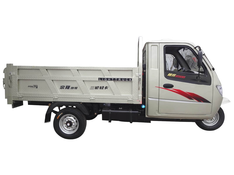 ZONLON Cargo Tricycle ZLK800 Place of Origin:Chongqing,China Brand:ZONLON or OEM Model No.:K800 Color:red,orange,blue,yellow,white,etc Size:4000×1400×1900mm ZLK800 970cc Water-Cooled Cargo Truck 3 Wheels Motorcycle Specification Feature EngineEngine typeType 465 engineDisplacement970mlCompression ratio8.8:1Max power output27 / 5000 kw/r/ min Max torque67 / 3000-4000 N·m/r/ min ClutchDry, single disc, diaphragm spring, constant meshTransmission & Reverse4 forward gears + 1 reverse Steering mechanismWheel steeringChassis50×100 Integrated chasshis made from rectangular tubeFront suspensionType 285Rear suspensionIntegrated 7 pcs leaf spring for Pickup, Chan'an rear axleBraking systemFR 220, RR 240, Hydraulic braking Wheel tireFR / RR 165R Battery12V / 36AhStarting methodElectricFuel tankGasoline, 32LFuel consumption≤306Ground clearance160mmMax speed60km/h Overall dimensionWheel base2800mmDimension4000×1400×1900mmCargo box size2200×1400mmVehicle weightKerb 980 kgs, Pay load 350 kgsContainer load4 sets in CKD / 20GP; 8 sets in CKD / 40HQOptioal parts1. Cargo box size and type2. Hydraulic braking system 3. Dumper system